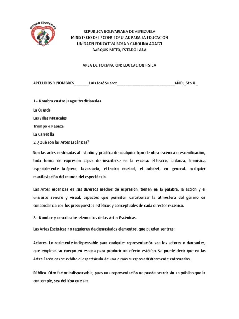 El ritmo en las artes musicales y escénicas: También debe considerar los elementos como la libertad de expresión, la ausencia de inhibiciones, evitar juicios críticos valorativos, estimular nuevas ideas durante el proceso creativo. Artes escenicas • son las artes de la representación escénica (teatro, danza, ópera, recitales, tradiciones populares, entre otras), donde confluyen de manera integral diferentes lenguajes artísticos y culturales. Su particularidad radica en la posibilidad de comunicarse, a través de la acción, en un tiempo presente con un público, por ejemplo, con espectadores de tu comunidad. El teatro, la danza, la música (especialmente la ópera, la zarzuela, el teatro musical, el cabaret, el music hall, los conciertos o recitales, etc.); Los medios de expresión de las artes escénicas son muy variados, y pueden ir desde la palabra y la acción, hasta los recursos visuales y sonoros. Artes escénicas son las artes de la representación escénica (teatro, danza, ópera, recitales, tradiciones populares, entre otras), donde confluyen de manera integral diferentes lenguajes artísticos y culturales. Elementos básicos de la expresión escénica.