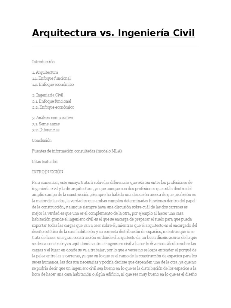 Acá te comentamos acerca de sus diferencias... Se habla mucho acerca de las similitudes entre la licenciatura en arquitectura y la licenciatura en ingeniería civil pero son sus profesionales los que constante y fervientemente buscan demostrar sus grandes diferencias. Si te interesa estudiar una carrera relacionada a generar infraestructura, puedes elegir entre arquitectura e ingeniería civil. Muchas veces nos preguntamos ¿q. ¿qué diferencias hay entre un arquitecto y un ingeniero civil? Mar 23, 2018 · el ingeniero civil se dedica a estudiar detalladamente cada aspecto dentro de una estructura, para darle funcionalidad, economía y ahorro de tiempo, por ejemplo, estudia las tuberías de un edificio, el sistema eléctrico, etc. Si te interesa estudiar una carrera relacionada a generar infraestructura, puedes elegir entre arquitectura e ingeniería civil.
